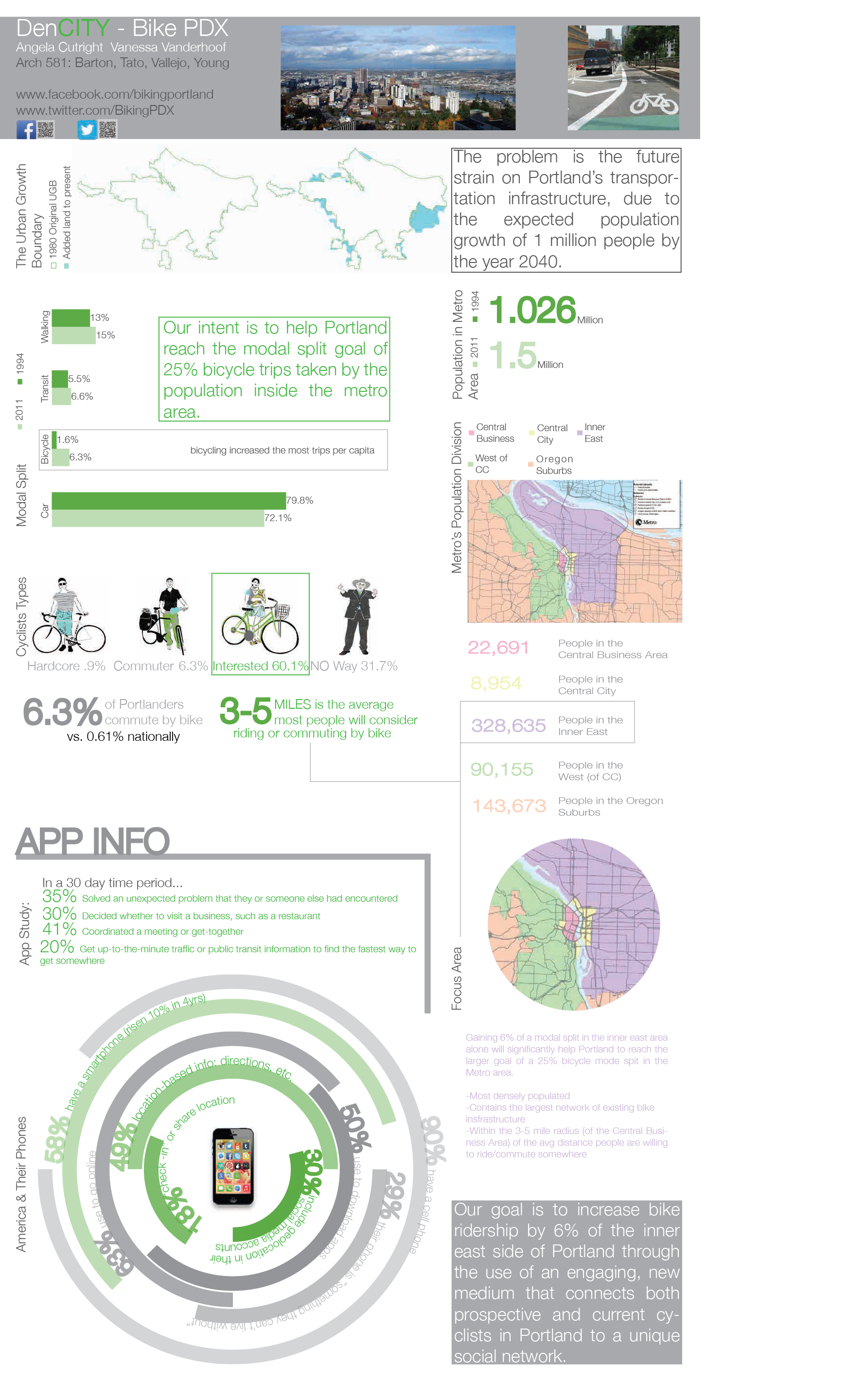 Our goal is to increase bike ridership by 6% of the inner east side of Portland through the use of an engaging, new medium that connects both prospective and current cyclists in Portland to a unique social network.